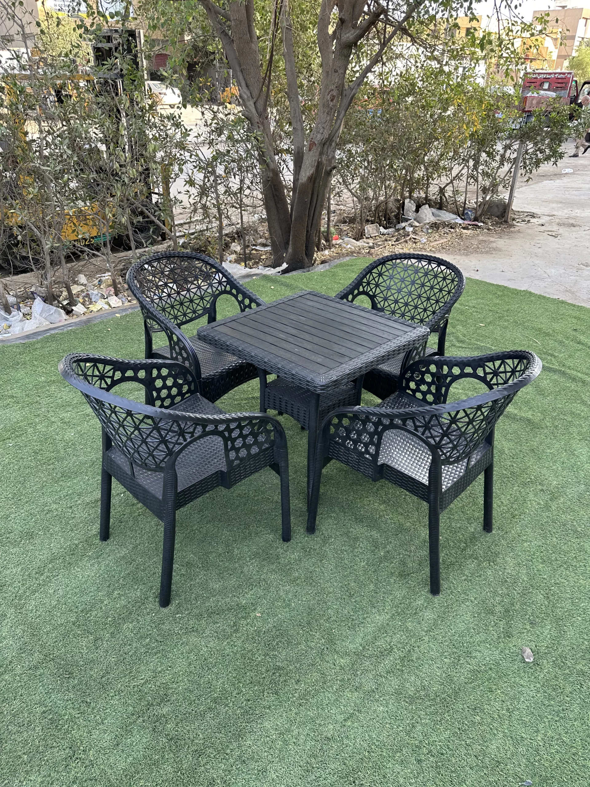 Practical and durable plastic chair set, ideal for outdoor use, featuring a comfortable, lightweight, weather-resistant design, making it easy to clean and transport