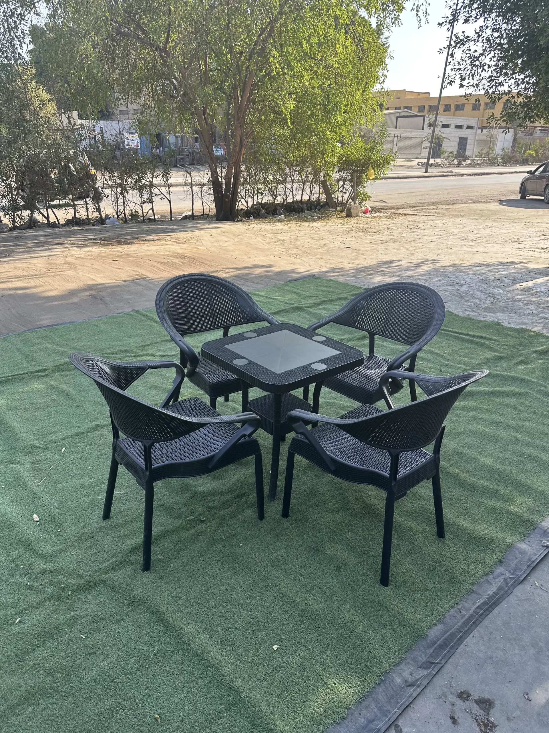 “Add a touch of elegance and comfort to your outdoor space with the Black Mesh Set. The set features the black Mesh chair and black Mesh table, making it the perfect addition to any space. The set boasts a unique design and high-quality materials that combine elegance and durability. Perfect for use in the garden, patio, or balcony, the set creates a comfortable and stylish atmosphere for any occasion.”