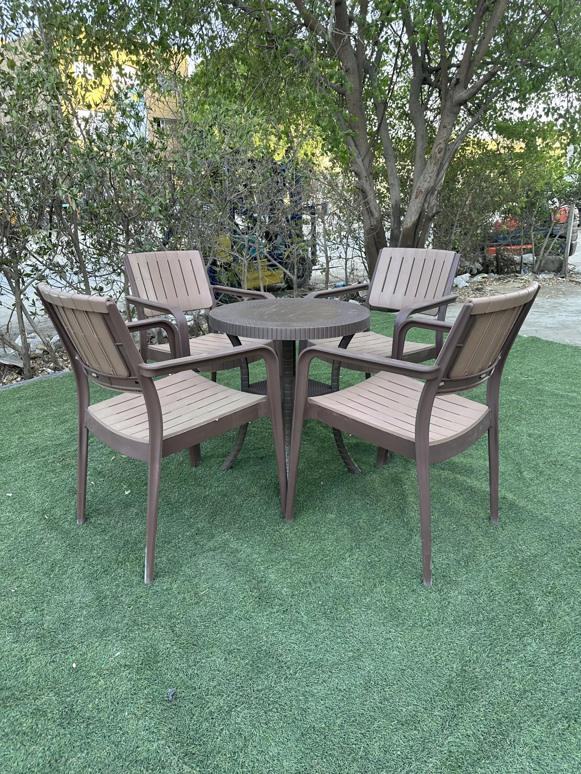 Practical and durable plastic chair set, ideal for outdoor use, featuring a comfortable, lightweight, weather-resistant design, making it easy to clean and transport